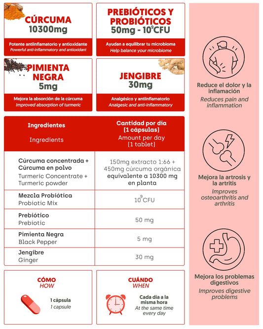 Cúrcuma Ultraconcentrada 10.300 mg con Probióticos y Prebióticos - NutriBrain