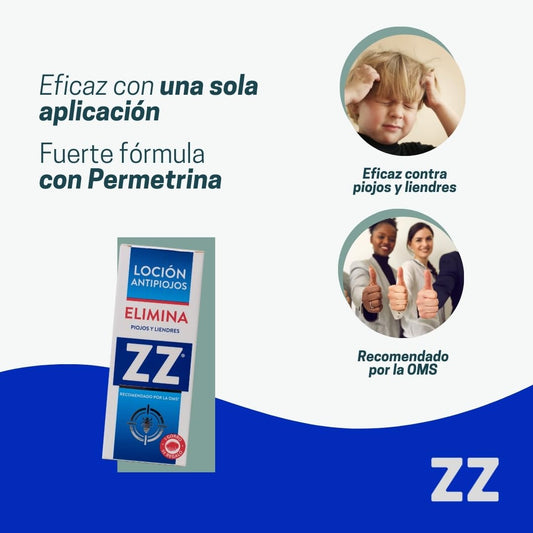 ZZ Loción Antipiojos con Permetrina – Elimina Piojos y Liendres en 10 Minutos