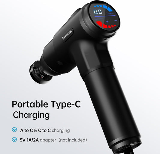 AERLANG Pistola de Masaje con Calor - 20 Niveles, 7 Cabezales y LED