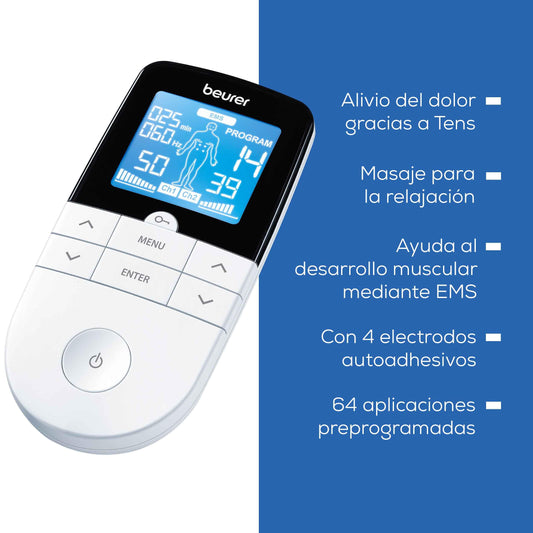 Beurer EM 49 – Electroestimulador TENS/EMS 3 en 1 con Masaje para Alivio del Dolor y Entrenamiento Muscular