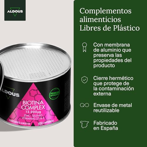 Biotina Complex Aldous 12.000 mcg – Fortalece Cabello, Piel y Uñas (400 Comprimidos)