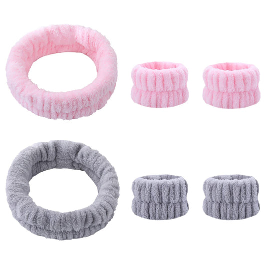 KEYRI Set de 6 Diademas y Muñequeras de Spa - Rosa y Gris