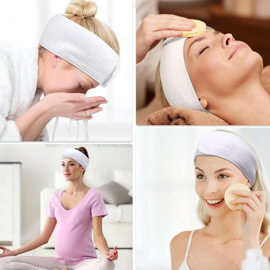 BangShou - Set de 6 Diademas Ajustables para Maquillaje y Spa - Toalla de Poliéster Suave y Absorbente para Limpieza Facial y Belleza - Blanco