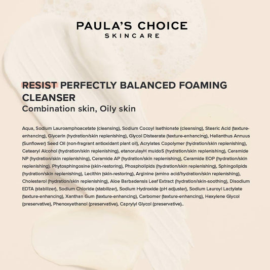 Paula's Choice RESIST Anti-Aging Facial Cleansing Foam - Creamy Face Wash - Fights Blackheads, Pores and Blemishes - with Hyaluronic Acid - Combination to Oily Skin - 190 ml