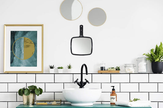 xnicx Handheld Mirror, Professional Makeup Hand Mirror, Shower Hand Mirror, Small and Portable, for Hairdressers Barbers Shaving, Black, 20.1cm x 31cm XL Handheld Mirror