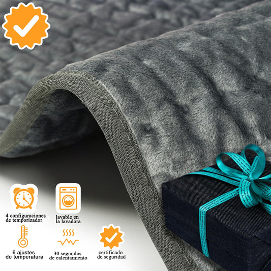 Electric Lumbar Blanket, Electric Blanket for Back, Neck, Shoulders and Belly with Automatic Shut-Off Function, Dark Grey Soft Flannel, 30 x 60 cm